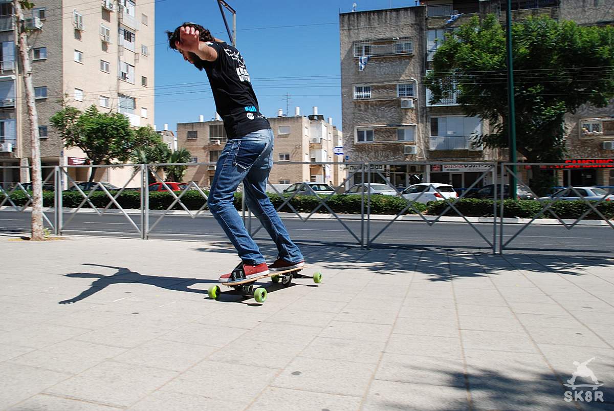 אבל בכל זאת מצאנו את אסף (התותח!), סקייטר שהעז והסכים לנסות בדרכו שלו,כלומר לדחוף קדימה ולהתעלם מהגלגלים הנוספים ורצועות הקיבוע. כמובן שככה קשה לשידוך להצליח ולאחר מספר נסיונות אמיצים עם חיוך של מבוכה קלה, החליט אסף לוותר. ששאלנו אותו איך הרגיש והוא השיב שזאת היתה הרגשה מוזרה, “כאילו שאני שוב הופך למתחיל בסקייטבורד והידע הקודם לא ממש עוזר.”